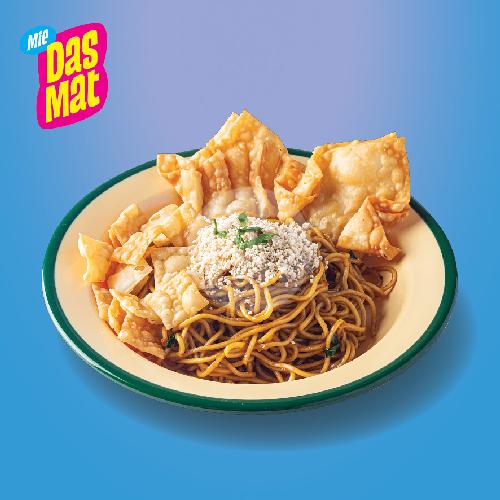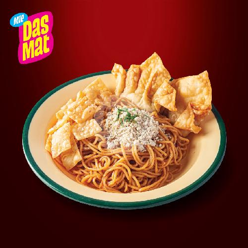 Mie pedas DasMat + Pangsit isi double + Ayam tabur + Pangsit tabur