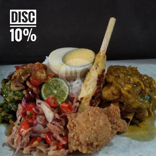 Nasi Putih, Ayam Betutu ( Base Genep) , Sate Lilit 1 Pcs, Jukut Bejek, Telor Pindang, Tum Ayam, Kering Kentang, Sambal Matah Kecombrang