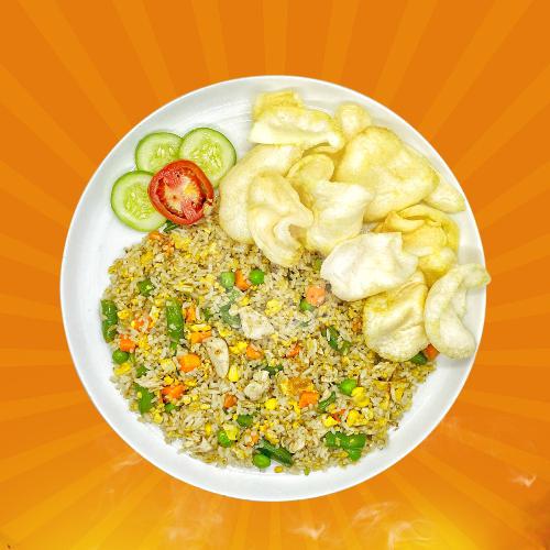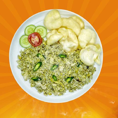 Nasi goreng yang diracik dengan bumbu cabe ijo yang pedas tapi nikmat. disajikan dengan telur dan daging ayam pilihan