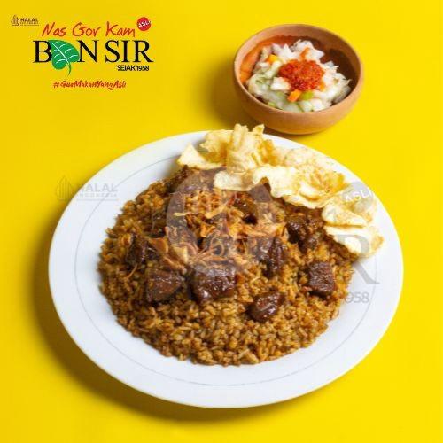 Nasi goreng berempah yang gurih, dipadu daging kambing empuk yang potongan nggak pelit.