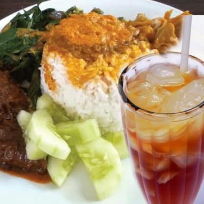 Paket Nasi Rendang Daging+Es Teh Manis Segar+Sayur Kuah Sambal Komplit