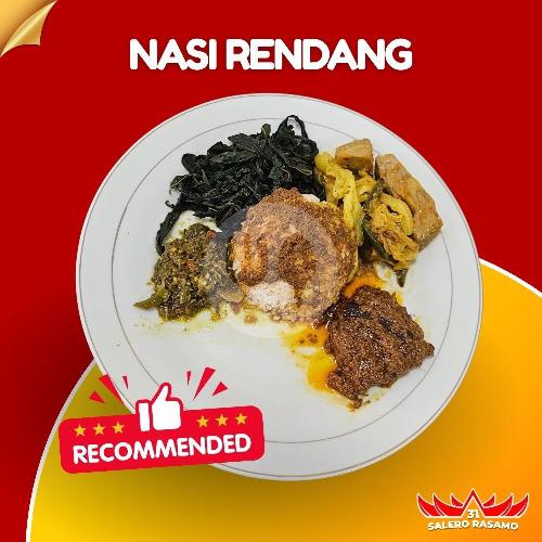 Nasi Rames Khas Padang (Nasi Putih -Lebih Banyak-, Sayur Kapau, Sambal Hijau, Daun Singkong, Kuah Autentik, Bumbu Rendang) Dengan Rendang Daging Yang Autentik Serta Nikmat