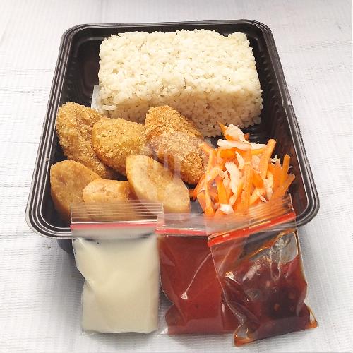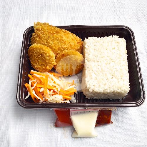Nasi + Ebi Purai + Chicken Katsu + Saus + Mayonaise + Sambal + Salad(jika butuh sendok atau sumpit tulis di catatan)