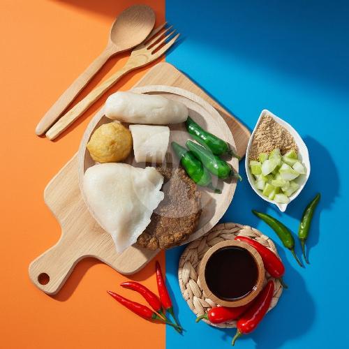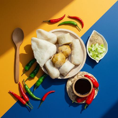 2 telur kecil, 2 adaan, 2 pempek kulit, 2 lenjer kecil