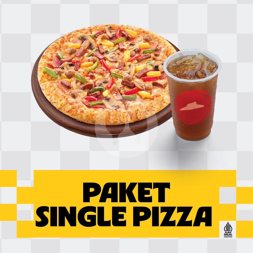 Pilihan Pizza (Meat Lovers, Cheese Lovers, Super Supreme, Tuna Melt) + 1 Iced Tea. (Food Court)