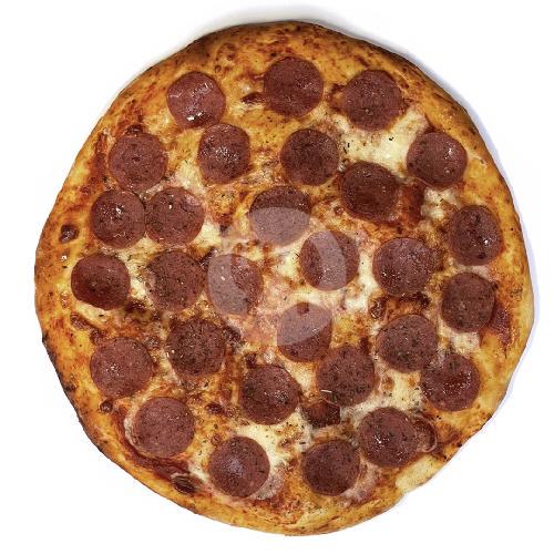 Pizza Dengan Tomato Sauce, Mozzarella Cheese, Pepperoni, Mix Herbs. Diameter Pizza 33cm Dipotong 8.