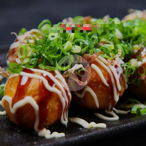 Jajanan khas jepang dibentuk bola-bola kecil terbuat dari adonan tepung terigu kemudian diisi gurita dan digoreng lalu diberi topping mayonaise, teriyaki saus, katsubushi, daun bawang.