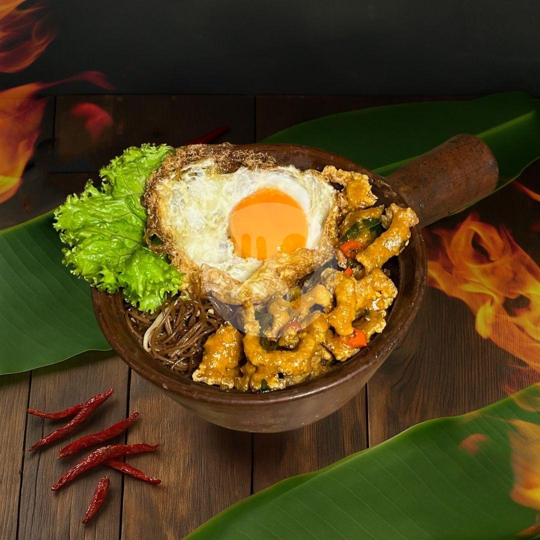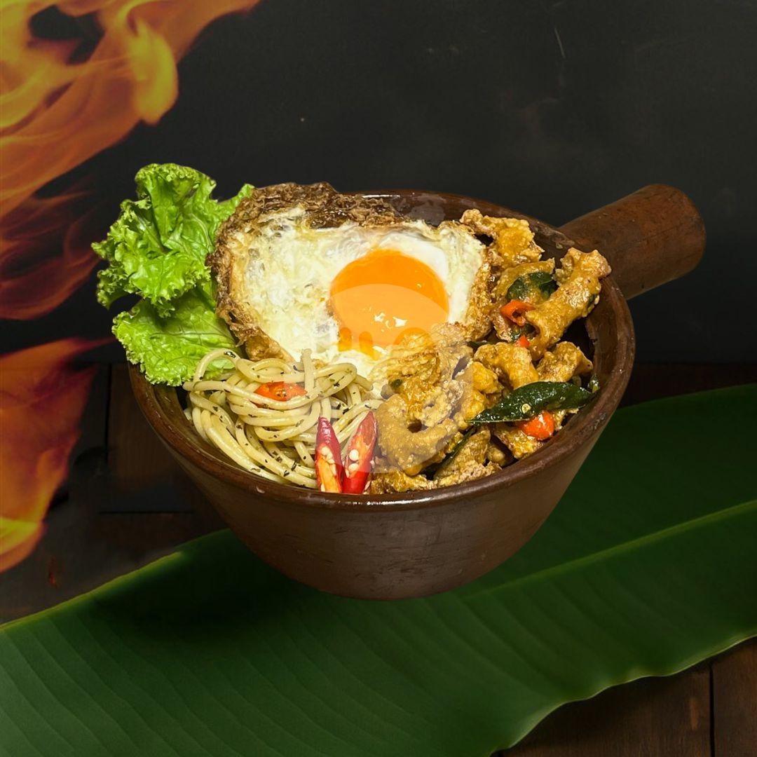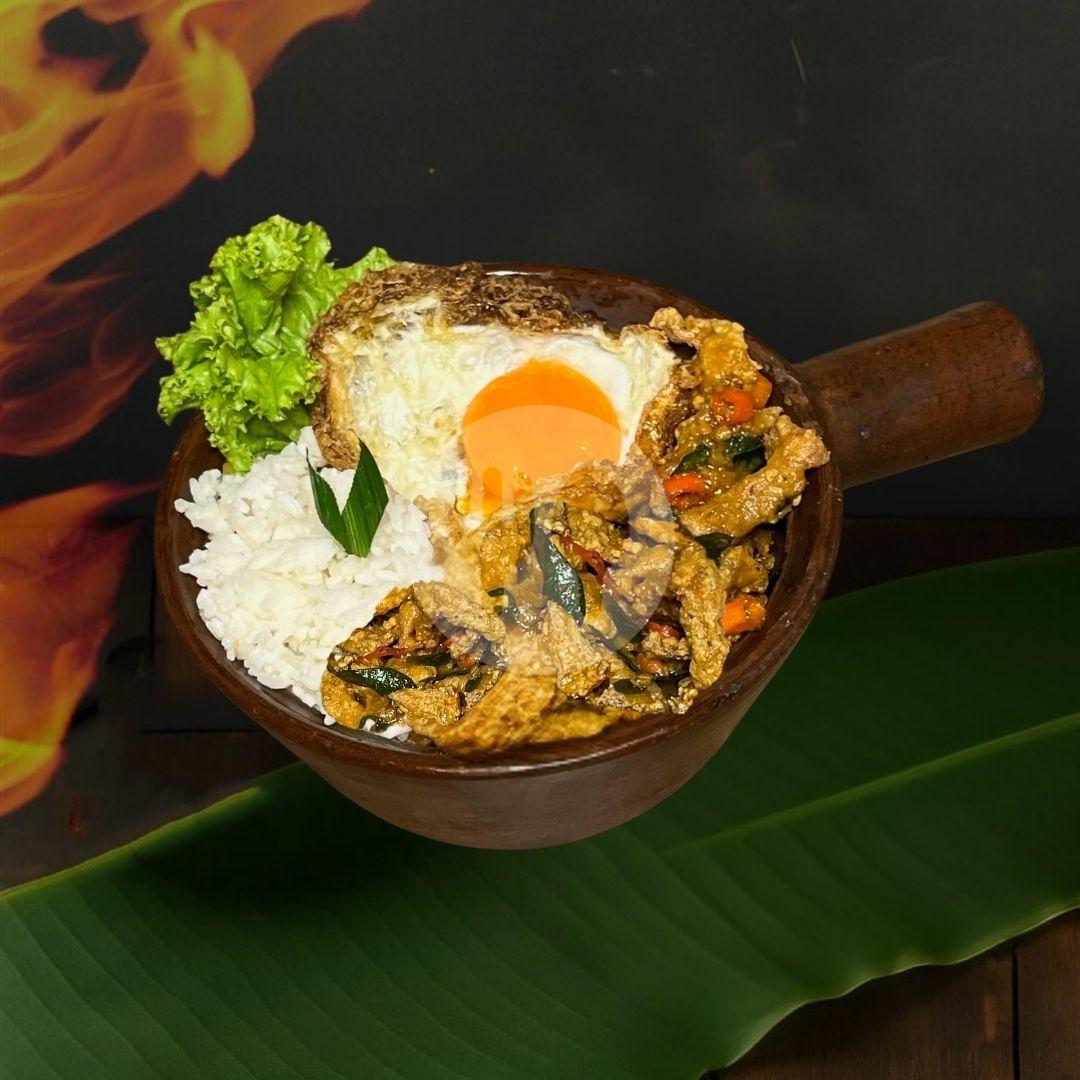 Nasi Putih Kulit Ayam with Crispy Lava Egg