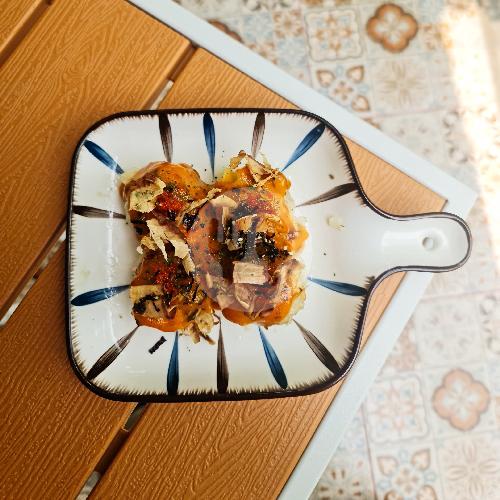 dimsum mix dengan topping saus mentai khas jepang serta taburan tobiko dan katsuoboshi.