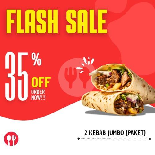 Kebab jumbo 1 + gratis kebab verry smal 1.....tortila jumbo,tortila veryy small, macaroni, daging premium, sayuran, saus tomat/pedas,mayones dll
