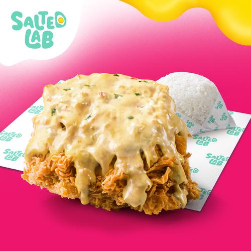 1pc Fried Chicken crispy dan juicy, dilumuri saus Salted Egg yang creamy dan gurih. Lengkap dengan nasi putih hangat!