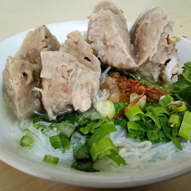 1 pcs bakso urat yang berukuran sedang di tambah 2 pcs bakso kecil polos