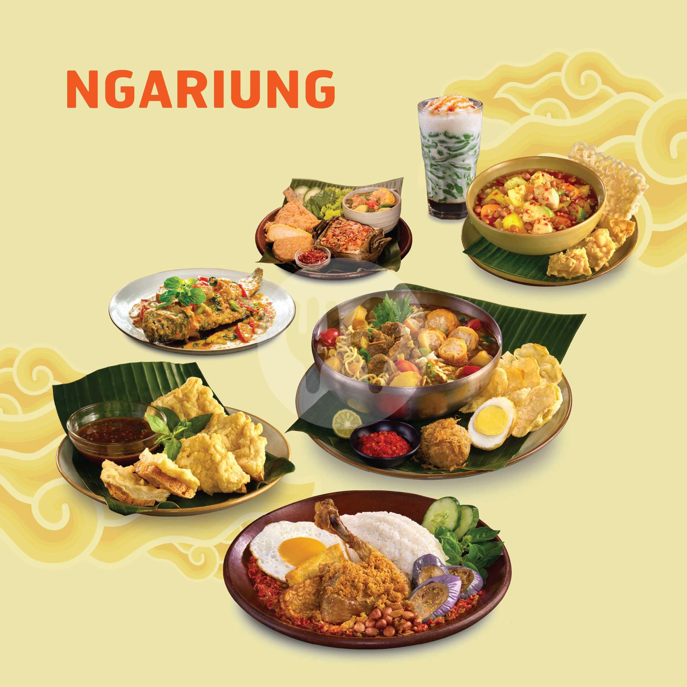 Gurame goreng/pesmol + nasi bakar peda + nasi cobek + soto mie + 4 pilihan hidangan penutup