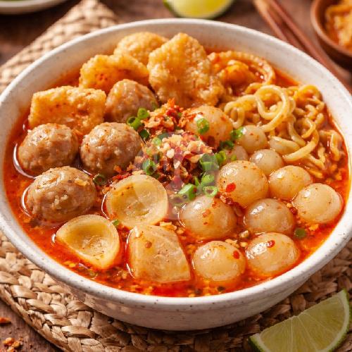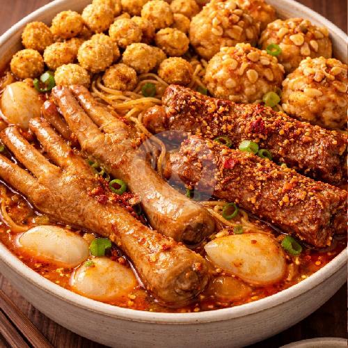 Kerupuk 3 jenis, Mie, Sawi, Telur, Cikur, Cuanki Lidah, Batagor Mini, Tulang, Ceker, Bakso Aci, Bakso sapi