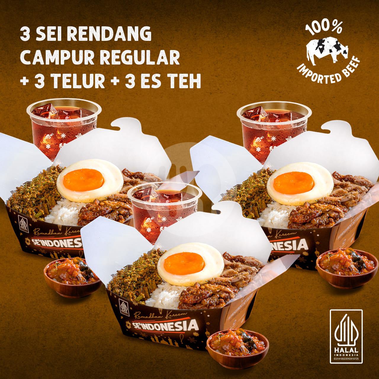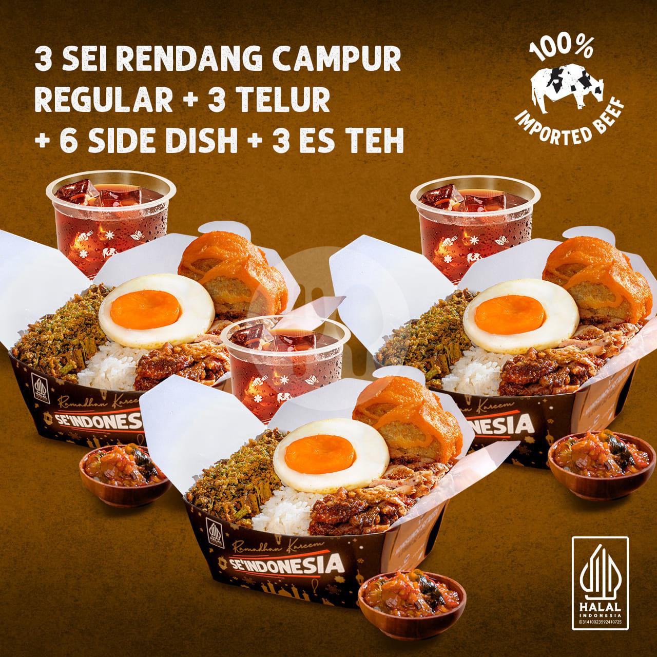 3 Ricebox Sei Campur Rendang Reguler + 3 Telur Mata Sapi + 3 Es Teh Celoteh