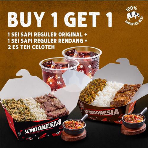 1 Ricebox Sei Campur Rendang Reguler + 1 Telur Mata Sapi + 1 Es Teh Celoteh