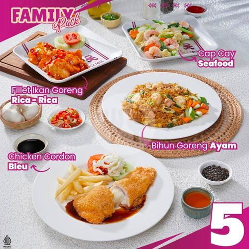 Chicken Cordon Bleu FF [1 Porsi] & Fillet Ikan Goreng Rica-rica [1 Porsi] & Bihun Goreng Ayam [1 Porsi] & Cap Cay Seafood [1 Porsi]