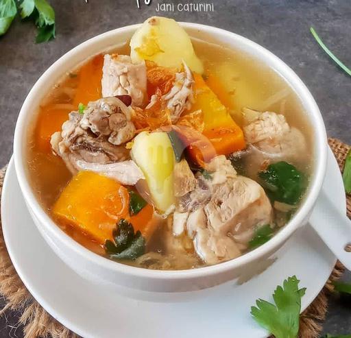 Sop Daging Sapi bening dengan tambahan kentang Wortel disajikan sambel dan kerupuk emping