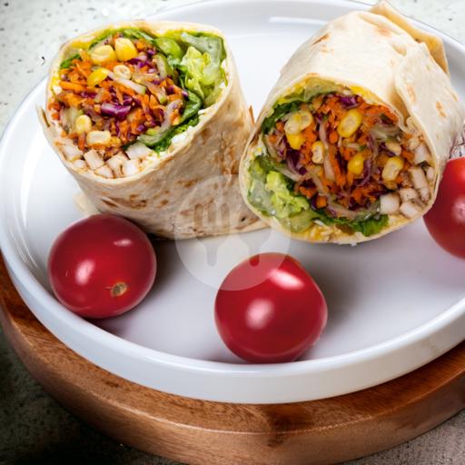Salad Wrap yg dibungkus tortilla berisi sayuran, topping Grilled Chicken.