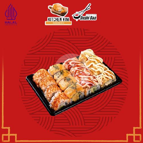 Simurah Kenyang 4 pcs fry Kani sushi toping original 4 pcs fry Kani sushi toping saus sambal 4 pcs chicken teriyaki chesee roll 4 pcs chicken spacy curry roll(Kecap Asin+Bon Cabe+Wasabi)