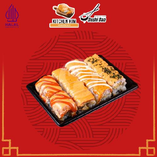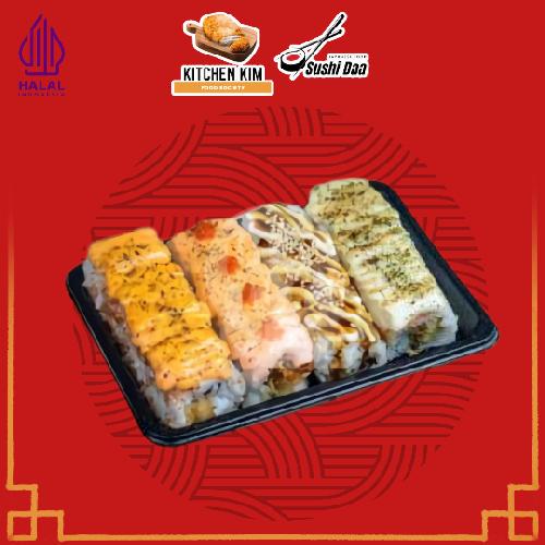 4pcsCheseeSalmonRoll4pcsMentaySalmonRoll4pcsChickenTeriyakiroll4PcsChickenCurryRoll(Kecap Asin+Bon Cabe+Wasabi)
