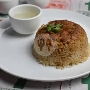Nasi Tim Komplit ala Toedjoeh Naga dengan ayam cah jamur yang lezat serta kuah hangat untuk melengkapi.