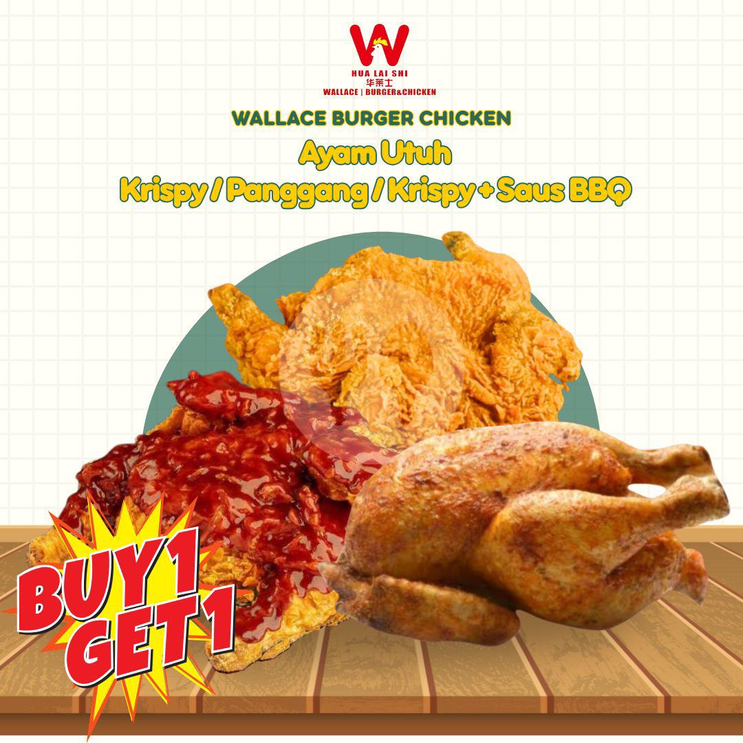 Satu ekor ayam aja udah puas, apalagi dapet dua! Buy 1 Get 1 sekarang, pilihan BBQ atau krispy siap bikin ramean makin seru!