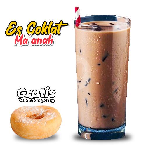 Es coklat khas Warkop Maanah, Rasa manis dan coklat nya Pas, gratis donat lho !