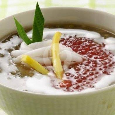 Bubur kacang ijo/ketan/campur+susu kental manis+roti tawar+ santen