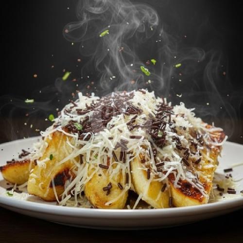 Pisang panggang dengan toping coklat, keju Dan Susu