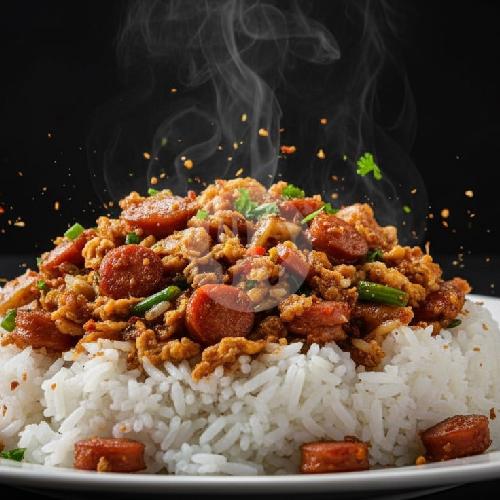 Nasi, Telor, Sosis, Bakso, Sayuran Dan kerupuk