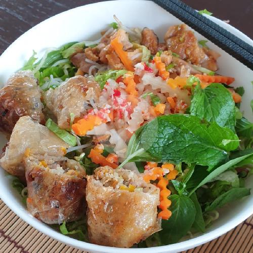 Bihun Siram Saus Khas Vietnam Dengan Daging Sapi Bakar,Lumpia Goreng Dan Sayuran Segar