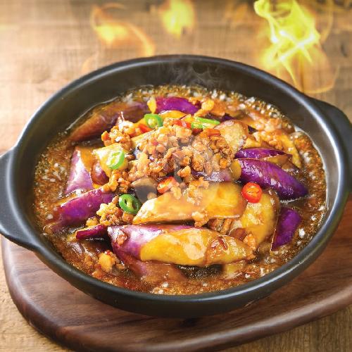 Terong Dan Ayam Cincang Yang Di Rebus Dengan Saus Khusus
