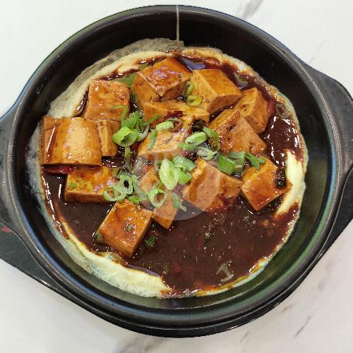Tahu Putih Potong Kecil Di Masak Kecap Sauce Dan Telur Ayam