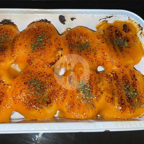 Dimsum ayam dengan saus Mentai, taburan Nori+Chili oil