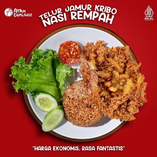 Telur Dadar Krispi Dengan Isian Jamur Tiram + Nasi Rempah + Timun + Sambal