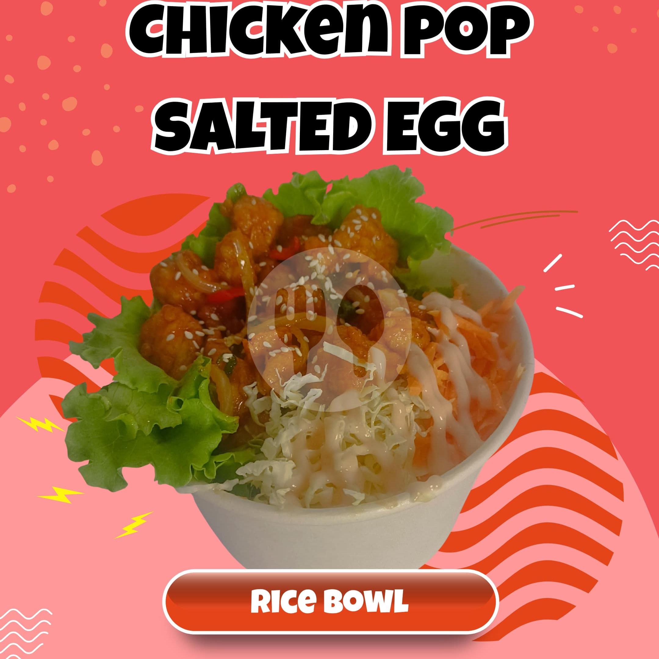 Salted egg lovers, wajib coba! Chicken pop krispi dibalur saus telur asin khas, creamy dan gurihnya pas.bisa pilih timun kalau kurang cocok sama salad. Bebas custom!