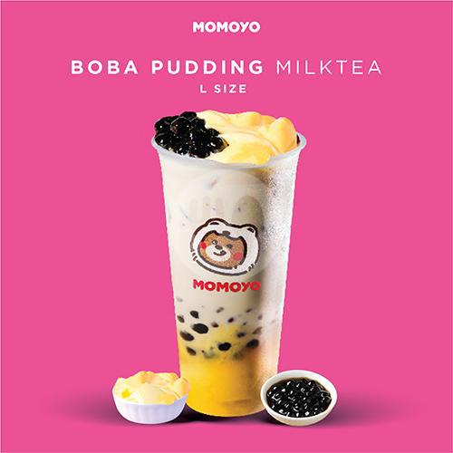 Boba Pudding Milk Tea, perpaduan milk tea dengan manisnya pudding dan kenyalnya boba, bikin segar dan nikmat setiap tegukan!