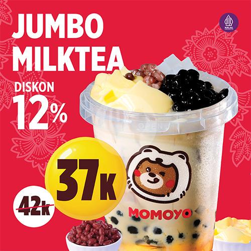 Jumbo Milk Tea adalah campuran teh oolong dengan gula aren, dengan kemasan ukuran besar, ideal untuk dinikmati dalam bersama.