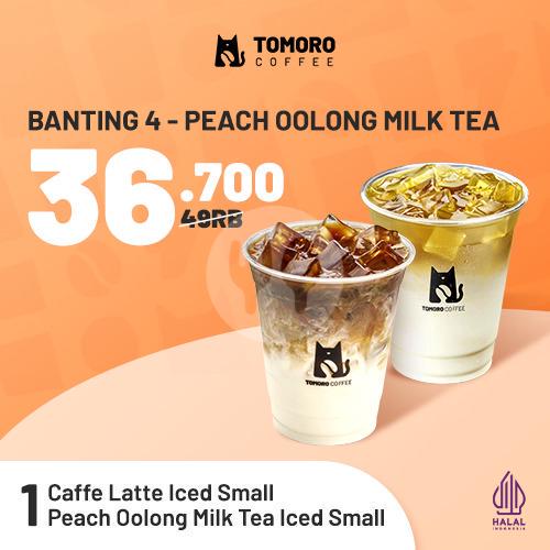 1 Peach Oolong Milk Tea Iced Small + 1 Caffe Latte Iced Small