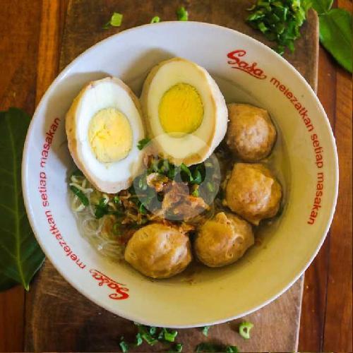 1 Pentol Isi Telur Ayam 1 Butir, 2 Pentol Kecil, 1 Tahu, Mie Kuning, Saos Dan Sambal