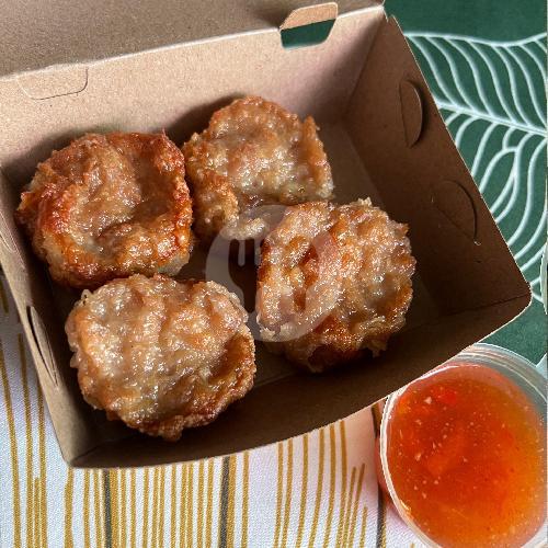 Dimsum isi keju yang digoreng dipadukan dengan saos bangkok