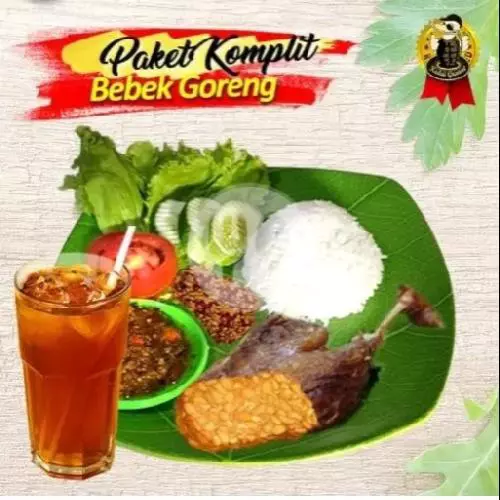 Bebek goreng, nasi ,sambel merah mantab ,tahu, tempe, lalapan , air mineral dan ice tarik