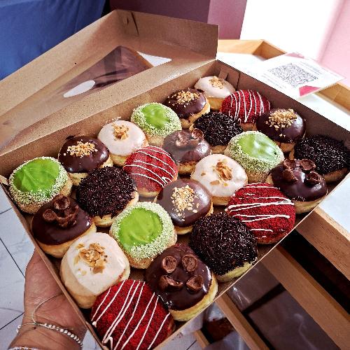 Paket besar donat mini aneka rasa yang fluffy dan cocok untuk acara kumpul keluarga, pesta ulang tahun, atau dinikmati bersama rekan kerja.