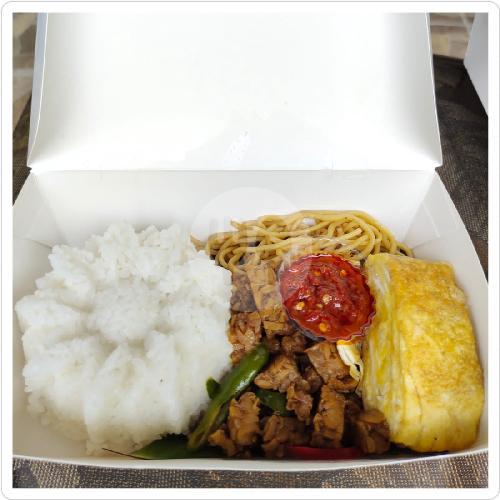 Nasi Putih/kuning, Telur Dadar Gulung, Mie Goreng, Orek Tempe, Sambal
