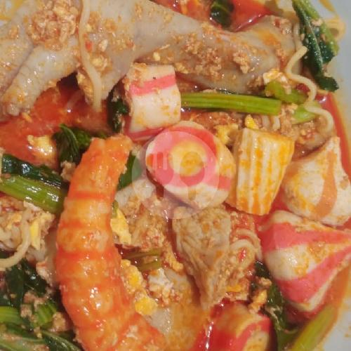 Krupuk Seblak Bintang + Krupuk Kepang Warna + Makaroni + Telur Kocok + Sayur + Buntut Udang + Chikuwa + Sosis + Scallop + Kembang Cumi + Duo Twister + Dumpling + Otak Otak. Noted: Jika Ada Topping Yg Habis Akan Diganti Dengan Yang Lain