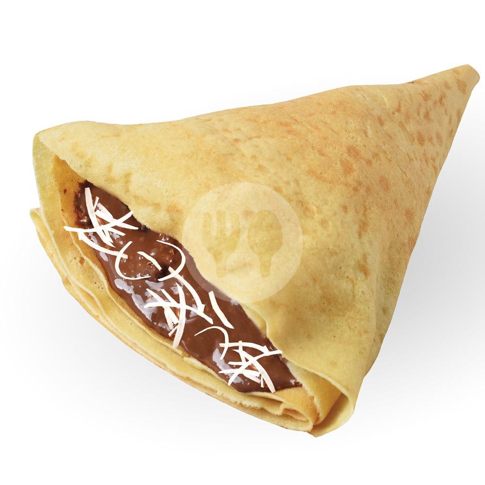 Crepes lembut (tidak renyah) dengan perpaduan manisnya Ovomaltine dengan gurihnya taburan keju