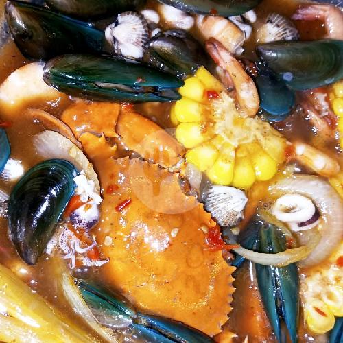 (Paket kenyang rame rame) 2 kepiting sedang + k. ijo + k. dara + k.simping + cumi + udang + jagung + 3 nasi