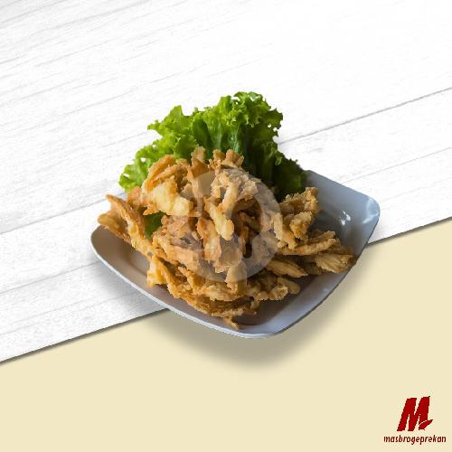 Ayam tepung dengan sensasi rasa bebakaran, dipadu saus khasnya masbro : saus pedas, saus teriyaki, saus barbeque, saus blackpapper, sambal matah