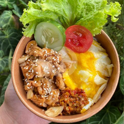 Nasi, Ayam Teriyaki, Telor, Sambal, Lalapan